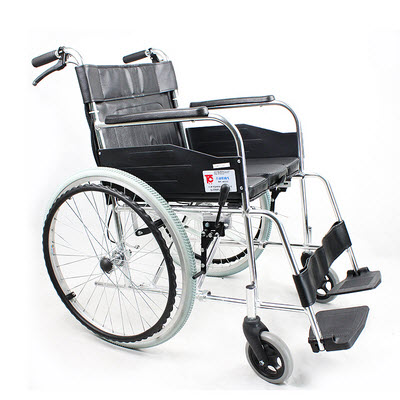 铝合金车架,双支撑架结构,表面氧化处理,可折叠,黑色皮革,软靠背,可拆卸硬坐厕垫,厕垫防水,易于清洗,内置U型开口厕孔,配大容量PVC光面方厕桶,厕桶可拆便于清洗,皮革扶手,塑料踏板,踏板高度分三档,可上下调节,塑料护板,带肘节式手刹车,前轮为6寸实心万向轮,后轮为22寸PU轮胎,防滑塑料手扶圈,后把配置护理刹车,配护腿带。