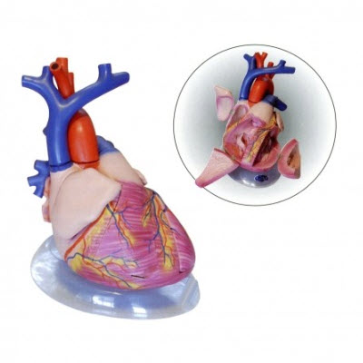 分成4件,安放于塑料座上。示外形及出入心脏的大血管,心房心室可打开示内部结构.