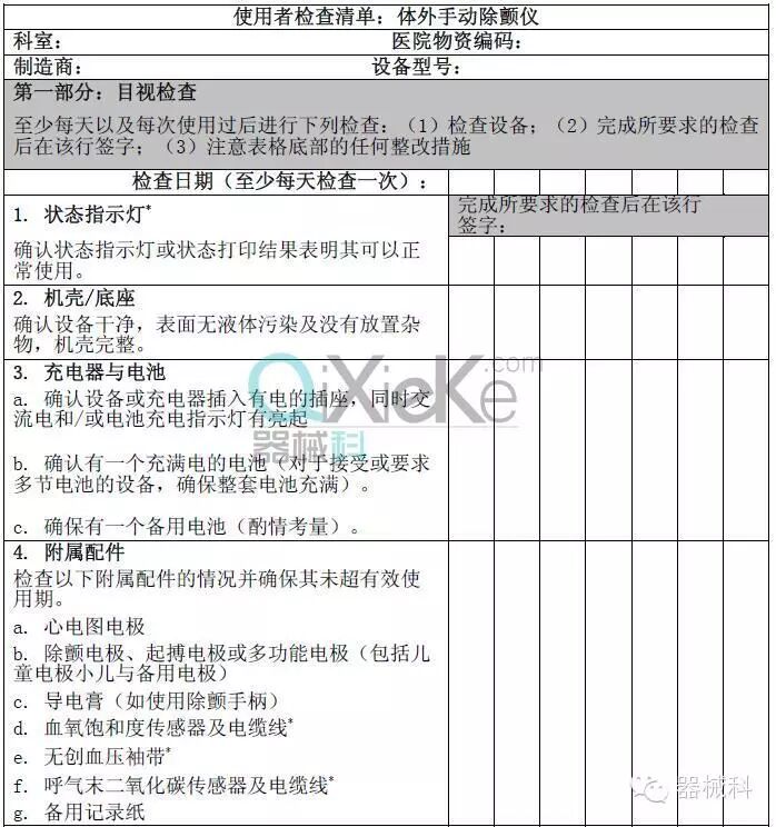 *除颤仪检查需求
