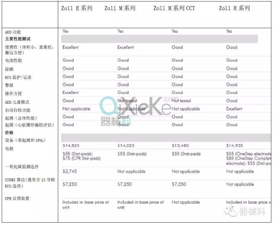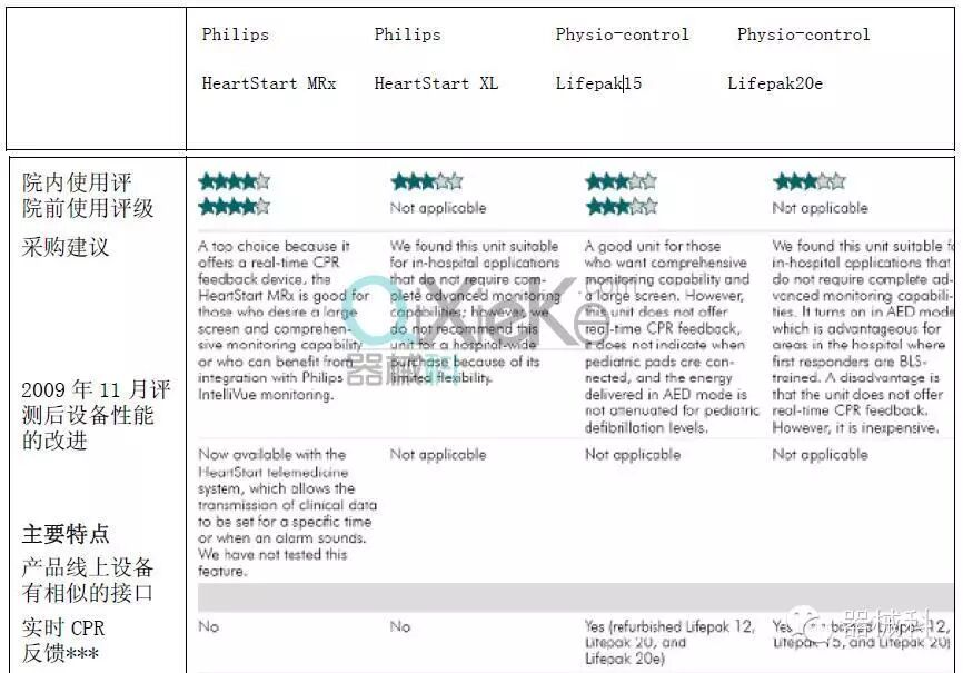 评测一览表:体外手动除颤仪(Part2 续)