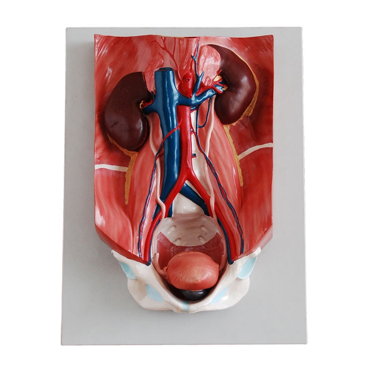 泌尿系统模型由泌尿系统各器官连腹膜后腔、肾剖面、膀胱剖面等4个部件组成。显示泌尿系统各器官、肾剖面的肾皮质、肾髓质以及膀胱等结构。