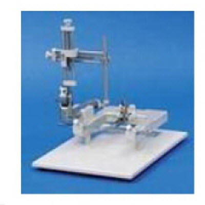 大鼠脑立体定位仪标准游标尺定位仪固定精度:0.1mm,垂直方向可90度转动并随时锁定位置单臂脑立体定位仪操作臂移动范围(上下,左右,前后)可达80mm.可选配微量注射泵、显微摄像装置、颅钻使用,含18度耳杆和大鼠适配器。