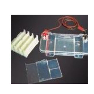 制胶可在倒胶槽中完成,配备的多用途倒胶槽可以倒制60×60mm的小胶,也可倒制120×60mm的宽胶,或60×120mm的长胶,还可以倒制120×120mm的大胶,本电泳槽还配有8种不同齿数和厚度的梳子供选择,包括大数量样品梳(25齿)标准梳和各种制备梳。