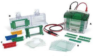 该电泳系统有四部分组成:A电泳槽外壳、相对应的模块、缓冲液槽和盖;B玻璃板和梳子;C加样引导器;D制胶支架和制胶框。该系统设计*大特点是功能灵活,即可以做普通的蛋白电泳、Western印迹,又可以做电洗脱和双向凝胶电泳。另外制胶简便,大大节约了整个电泳的时间。