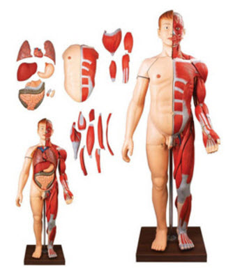 ■ 该模型置于基板上,由男性头颈部、躯干和四肢组成,对比展示 人体皮肤、 肌肉、胸腔、腹腔、盆腔等结构,可分解成28部件,共有240个部位显示。