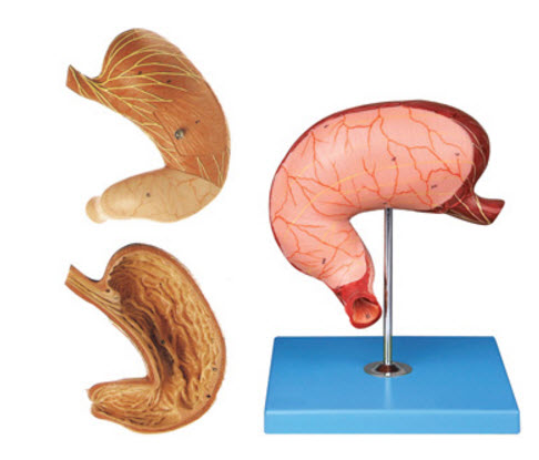 该模型由胃冠状剖面两个部件组成,有27个部位指示标志。