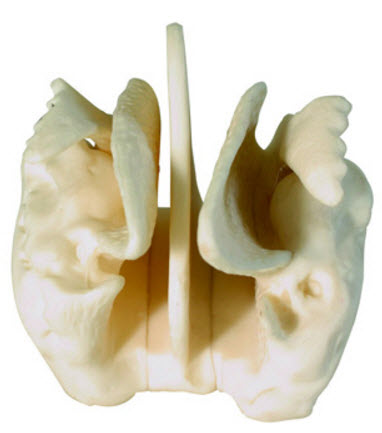 ■筛骨为含气骨,位于两眶之间,参与构成鼻腔。分为筛板、垂直板和筛骨迷路。