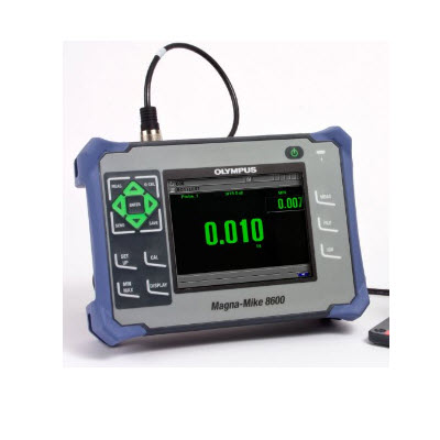 Magna-Mike 8600是一款利用简单的磁法对非铁性材料进行可靠且重复性极高的厚度测量的便携式测厚仪。Magna-Mike仪器的操作非常简单。测量时,在被测材料的一侧按住或移动磁探头,在材料的另一侧放上或在容器里放入一个小目标钢珠(或目标圆盘、目标钢线)。探头的霍尔效应传感器测量探头端部到目标钢珠的距离。测出的距离即刻被作为厚度读数以容易辨读的数字形式显示在屏幕上。
