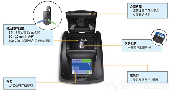 Modulus? 是一款集生物与化学发光检测、荧光检测、 光吸收检测于一体的多功能检测仪。其采用独特的模块化设计, 可根据实验的需求, 选用相应的检测模块, 来完成生物与化学发光检测、荧光检测和光吸收检测。