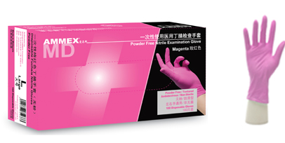 SFDA食品药品安全认证产品。丁腈材质,不含乳胶成分,不致过敏。采用超薄技术精制而成,贴肤舒适,减少手部疲劳;同时拥有良好的拉伸强度和耐穿刺性能。玫红色深受儿童和女性欢迎。