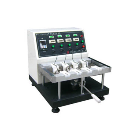 针对鞋面使用之原料,如:皮革、人造皮、布料……等,裁取试片,装置于试验机上,在外围有水之下,施以挠折动作,以测知材料耐渗透指数,或为研发改良材料、防水加工之依据。