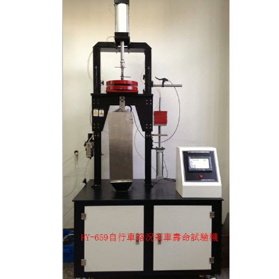 本机用来模拟测试自行车刹车片在实际情况下的耐磨性能.测试时车轮在负重的情况下,达到一定的行驶速度时,启动刹车系统至车轮刹止停止状态,此作为一个周期,如此反复多个周期,评估刹车片耐磨情况。测试环境分为晴天和雨天测试,即干磨和湿磨状态,本机配置有喷水系统供用户选择使用.符合EN14764标准的规定.