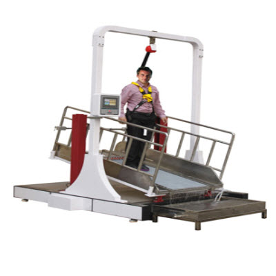 本机是模拟人在走路过程中的防滑性能,试验人员穿着试验鞋子站在一可改变倾斜角度的平台上,并在平台上加入流动的介质,通过测试人员滑倒时平台的倾斜角度以及介质的种类,从而判断鞋子的防滑性能。