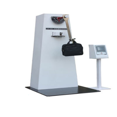 本机适用于书袋的摆动和跌落试验,非书袋加载一定的负荷,悬挂在机台夹具上,以一定的角度摆动一定次数,或静止一定时间后重直跌落,以检验书袋的背带,提把,调整钩环是否牢固及测量起连接作用的部件长度的变形量。