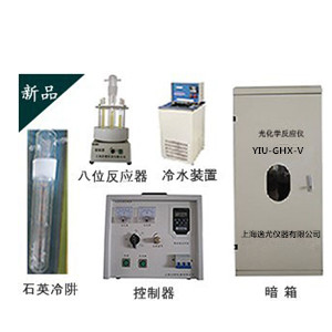 冷水循环装置1台,反应暗箱:1台,YIU专用光源控制器:1台,石英冷阱:1只,汞灯:1支,氙灯:1支,金卤灯:1支,八位磁力搅拌装置:1台,石英试管:16只(30ml,50ml各8只),移动推车:1个。
