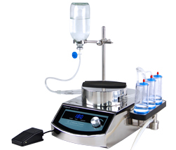 HTY-APL01/02是具备泵管直线安装,自动夹管,压力安全保护功能的新一代智能集菌仪。配合Steritailin?集菌培养器可构成无菌检测系统,或配合FC系列薄膜过滤器G构成微生物限度检查系统。供试品通过集菌仪的定向蠕动加压作用,被转移至培养器杯体内并正压过滤,供试品中可能存在的微生物被滤膜截留,通过冲洗滤膜(如有必要),除去供试品的抑菌成分。如进行无菌检查在滤器内灌装培养基进行培养,以检验供试品是否含菌。如进行限度检查,取出滤膜贴膜与琼脂平板,培养并计数。