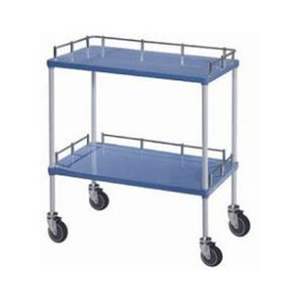 器械车分为上下两层,均带有不锈钢护栏,器械可分类放置在不同层面上。