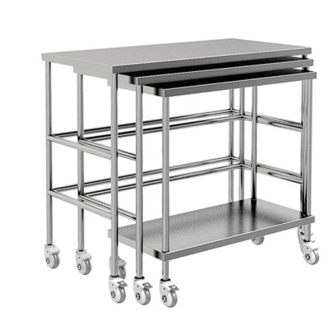 2、三层叠式器械台,配静音万向脚轮4只,带对角刹车。