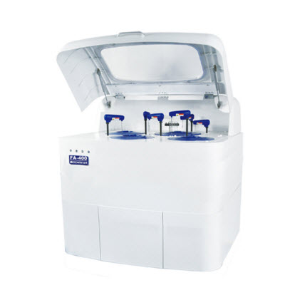 FA系列(滤光片型)全自动生化分析仪分别包括FA-400、FA-300和FA-200三个型号。该系列产品采用当今国际主流的分立式结构设计,每种型号均配有自动8段冲洗装置,此外还采用多项欧洲专利和先进技术,系统功能完善、检测结果可靠。在实验室环境条件下,该系列生化分析仪对血清、尿液等样品中的化学/生化成份定量检测、分析的体外诊断设备,适用于临床诊断和科学研究。