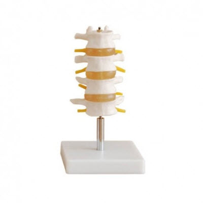 这款自然大腰椎显示正常腰椎、椎间盘和神经根。有底座。
