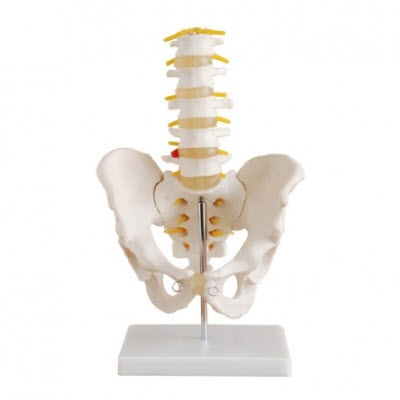 该骨盆带五节腰椎模型由髋骨、骶骨、尾骨及5节腰椎组成,有底座。