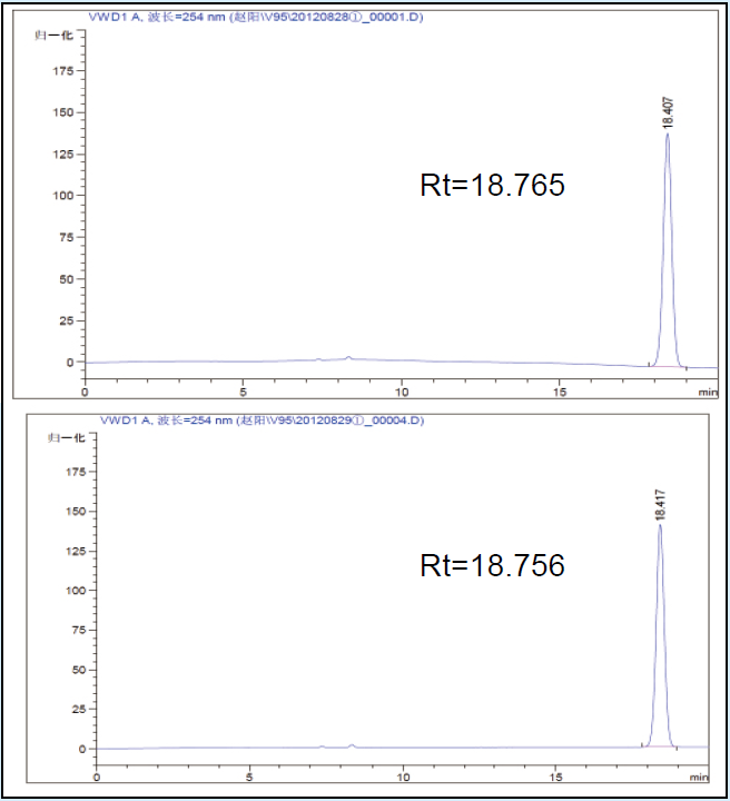 Venusil? MP C18(2) 经过纯水冲洗4h前后,尿苷的保留色谱图