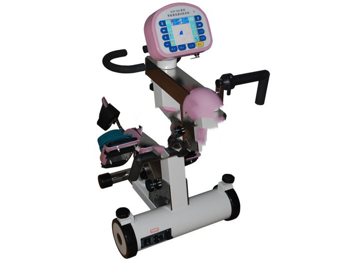 1、KD- ZXQ -02型智能康复训练系统造型美观、稳固、大方、实用。针对患者训练的安全性和稳定性设备做了配重设计和防滑设计。电机动力系统运动时有力且平稳,使智能康复训练系统在患者训练时安全有保证,使设备的各项功能指标都能正确运行(进口电机)。动力系统采用特殊的结构设计,使智能康复训练系统的动力系统使用寿命长。具有患者从完全被动训练阶段到主动和被动训练相交叉的助力训练阶段到完全的主动训练阶段到初期主动力量训练阶段的患者康复过程。采用彩色LCD显示技术且一目了然的控制面板的设计,使医务工作者能轻松容易的掌握。具有六种针对性的训练模式:神经模式、骨科模式、心肺模式、反馈模式、被动模式、游戏模式。具有四种患者训练安全保护功能:痉挛保护、声控保护、靶心率保护、磁控保护。且痉挛敏感等级、声控敏感等级和靶心率目标数值均可调。能够实时显示患者主动做功情况。可以根据患者情况上肢训练单元可高低调节和前后调节,扶手训练位可调,显示屏幕可360度转动,充分考虑了患者训练体位。