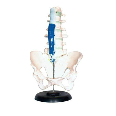 腰骶椎解剖与脊神经关系模型示腰椎、骶骨作解剖,示其与脊髓脊神经关系,示马尾、终丝、被膜等。