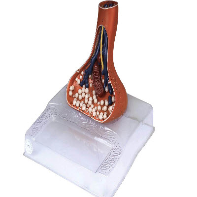 1.该模型显示电子显微镜下突触(化学性突触)的放大结构,可观察神经元轴突、突触前膜、突触小泡、线粒体、神经微管和神经微丝等结构,共有9个部位指示标志。