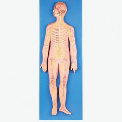 BM18101神经系统模型该模型显示中枢神经脑和脊髓、周围神经脊神经等结构,包括从中枢发出到身体各部的脊神经(臂从桡神经、尺神经、正中神经、腰丛股神经骶丛坐骨神经等)等结构,共有33个部位指示标志。