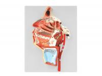 XM-641口、鼻、咽、喉内侧面血管神经模型显示头面部内侧面口、鼻、咽、喉内部结构以及脑血管和脑神经等结构,共有51个部位指示。