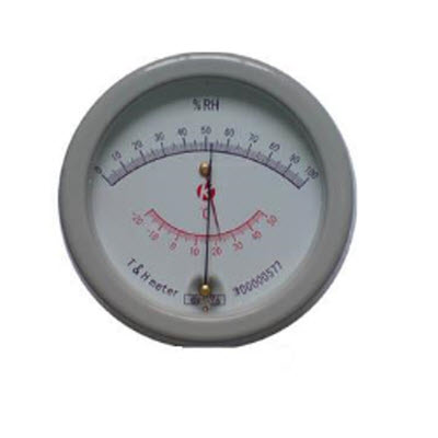 人的头发有一种特性,它吸收空气中水汽的多少是随相对湿度的增大而增加的,而毛发的长短又和它所含有的水分多少有关。正常毛发在干的时候,约可伸展20%,湿的时候,约可伸展40%。利用这一变化即可制造毛发湿度计。用酒精等物将毛发洗净除油脂,将头发的一端固定,而另一端挂一小砝码,为能够看清楚头发长短的变化起见,而将头发绕过一个滑轮,同时在滑轮上安一长指针。由于砝码本身的重量作用,而使头发紧紧地压在滑轮上。当头发伸长时,滑轮就作顺时针方向转动,并带动指针沿弧形向下偏转,而当头发缩短时,指针则向上转动。设空气完全干燥时,指针所指的位置为0。空气中水蒸汽达到饱和状态时,指针所指的地方算作100,再用通风干湿计和它相核对,刻出度数,这样就可直接测出空气的相对湿度了。毛发湿度计的优点是精度高,质量好