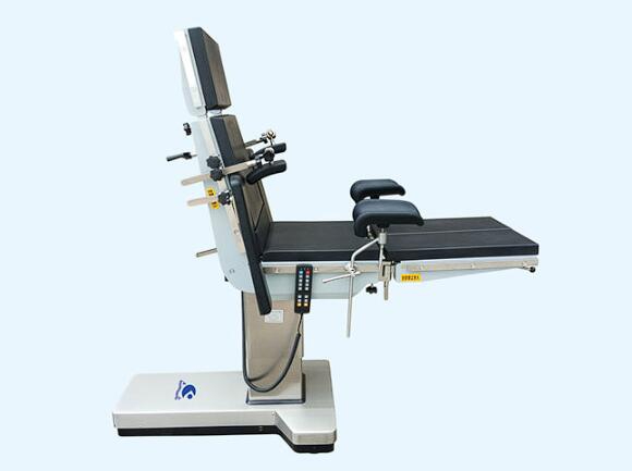 电动液压手术台主要供医疗机构施行外科手术用,适用于头、颈、胸腹腔、会阴、四肢等外科、妇产科、泌尿科、五官科、脑外科等手术需要。台面升降、前后移动、左右倾、前后倾、背板上下折转、台面落地刹车、一键复位均由电动液压实现,按钮操纵。