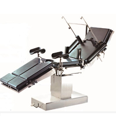 供医院手术室施行头、颈、胸腹腔、会阴、四肢等外科、妇产科、泌尿科、五官科、脑外科等手术。腿板即可外展又可拆卸,调节方便,特别适合泌尿科手术。双层台面全部采用高强度透光板制成,可在手术时进行X射线诊察。台面前后倾,上下升降及背板上下折均由电动推杆实现。