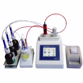 AKF-2010V智能卡尔费休水分滴定仪由上海禾工科学仪器有限公司以卡尔-费休(Karl-Fischer)容量滴定法作为检测原理设计制造。仪器通过采用全新设计的高精度滴定组件和人性化的软件操作界面,具有控制精度高,自动化程度高,密闭性能好、测量范围广、检测灵敏度高、操作简单方面,统计功能强大等特点,具有多项创新专利技术,高分性能指标高于国内外同类产品,产品于2013年正式通过国家科委项目组专家的验收。经过数年持续改进,并获大量国内外客户极高的使用满意度,仪器能进行固体、液体、气体样品中的结晶水、吸附水、游离水等水含量准确测定,可完全替代进口同类产品。产品已经被广泛使用于石油、化工、制药、日用化工、食品、农业、实验室等诸多行业的水份测定需求领域。