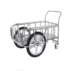 参数:1050*820*890mm由不锈钢板材,厚度不小于0.8mm,主体车架由Φ38mm和Φ25mm,δ1.2mm的不锈钢管加工而成车后有不锈钢把手,耐磨耐腐蚀两大轮是Φ455mm可充气轮胎,使担架车移动过程平稳、安全。两小轮为Φ125mm塑包静音刹车轮,移动时安静灵活。不锈钢送物车主要用于运送中型不易搬运的医疗器械或大量资料器材,减少医护人员劳动,提高工作效率。