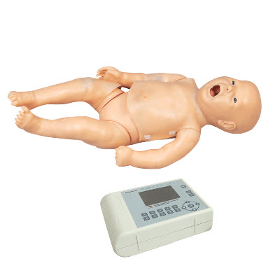婴儿听诊模拟人包括婴儿、听诊控制盒、遥控器,婴儿由进口塑胶制成,皮肤仿真,阴囊内有逼真的睾丸,具有婴儿心肺听诊和基础护理功能。
