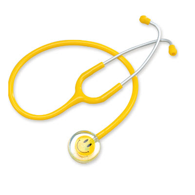 不同於傳統型的聽診器,多了黃色笑臉置入中心,也為長時間看診的護士醫師帶來點時下流行的樂活新態度。可搭配同色系的黃色Y管,讓整起造型看起來更為一致。