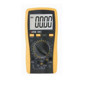 简单介绍 VICTOR88D万用表(4 1/2位) 特点: 1、新型防振套,流线形设计,手感舒适; 2、大屏幕显示,字迹清楚; 3、金属屏蔽板,防磁,抗干扰能力强; 4、改变传统自动断电,正常操作不断电; 5、全保护功能,防高压打火电路设计; 6、自恢复保险管保护电路设计。 基本功能 量程. 基本准确度 直流电压 200mV/2V/20V/200V/1000V ±(0.1%+5) 交流电压 2V/20V/200V/750V ±(0.8%+25) 直流电流 200uA/2mA/20mA/200mA /20A ±(0.5%+4) 交流电流 20mA/200mA /20A ±(1.5%+25) 电阻 200Ω/2kΩ/20kΩ/200kΩ/2MΩ/200MΩ ±(0.4%+5) 电容 20nF/2uF/200uF ±(3.5%+10) 频率 20kHz/200kHz ±(3.0%+150) 温度 (-20 ~ 1000)℃ ±(0.8%+40) 特殊功能 88D 二极管测试 √ 通断报警 √ 低电压显示 √ 数据保持 √ 自动关机 √ 功能保护 √ 背光显示 √ 防震保护 √ 输入阻抗 10MΩ 采样频率 3次/s 交流频响 (40-400)Hz 操作方式 手动量程 *大显示 19999 液晶显示 65×45mm 电源 9V (6F22) |一|般|特|征| 机身颜色 机身-深灰防振套-黄色 机身重量 约400g(含电池) 机身尺寸 189×97×35mm 标准配件 表笔,鳄鱼夹,电池,说明书,合格证,皮盒,TP01温度探头一个 标准内包装 彩盒 外包装尺寸 标准包装数量 30台 标准包装箱毛重 约23kgVICTOR88D万用表,新型防振套,流线形设计,手感舒适;大屏幕显示,字迹清楚;金属屏蔽板,防磁,抗干扰能力强;改变传统自动断电,正常操作不断电;全保护功能,防高压打火电路设计;自恢复保险管保护电路设计。