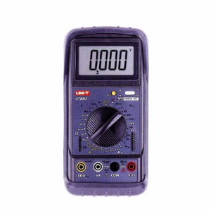 简单介绍 优利德UT2003折叠数字万用表 优利德UT2003 UT2003数字万用表 UT2003折叠数字万用表 UT2003折叠数字万用表的技术指标 基本功能 量程 基本精度 直流电压 200mV/2V/20V/200V/1000V ±(0.05%+3) 交流电压 2V/20V/200V/750V ±(0.8%+10) 直流电流 2mA/20mA/200mA/10A ±(0.5%+2) 交流电流 2mA/20mA/200mA/10A ±(0.8%+10) 电阻 200W/2kW/20kW/200kW/20MW/200MW ±(0.2%+1) 电容 2nF/200nF/2mF/20mF ±(2.5%+10) 频率 20kHz ±(1.5%+5) UT2003折叠数字万用表的特殊功能 三级管测试 √ 二极管测试 √ 通段蜂鸣 √ 全符号显示 √ 睡眠功能 √ 数据保持 √ 误操作报警 √ 低电压提示 √ 电压测量输入阻抗 10MW √ *大显示 19999 √ 显示器尺寸 65×33mm √ 电源 9V电池(6F22) √ UT2003数字万用表的一般特征 机身颜色 墨绿色 机身重量 495g(包括保护套) 机身尺寸 190×100×55mm 标准配件 表笔,电池,说明书,保护套,保修卡,表笔灯(UT-TL)*,带灯表笔(UT-L1/L2) 标准内包装 彩盒 标准包装数量 20台 外包装箱尺寸 625×460×340mm 标准包装箱毛重 14.6kg优利德UT2003折叠数字万用表