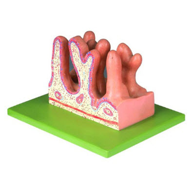 1.该模型显示空肠内面粘膜表面许多绒毛结构,绒毛由粘膜上皮和固有层向肠突起而成。