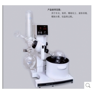 旋转式蒸发器是采用旋转蒸发瓶(烧瓶),增大蒸发面积在减压下置于水浴中一边旋转,一边加热的装置,使瓶内溶液扩散蒸发。是化学工业,医药工业,高等院校和科研实验室等单位用于制造及分析实验赖以浓缩,干燥,回收等较为理想的必备基本仪器。