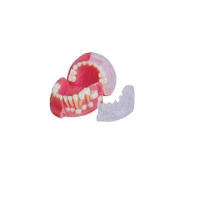 展示了三岁儿童乳恒牙交替期,全口乳牙与恒牙在颌骨内的具体位置,立体感强,其右半部分可以自由替换。