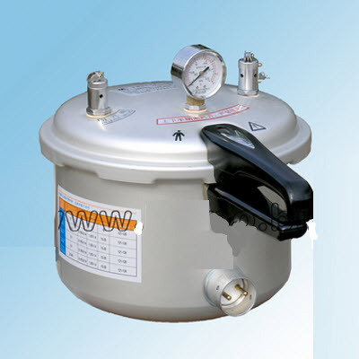 利用热源加热灭菌器内的水产生蒸汽,使得内部物品迅速潮润、加热具有良好的穿透性,达到灭菌效果,并具有操作简单、加热迅速、移动方便等优点。