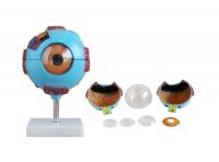 XM-424眼球模型将眼球纵切成两部分,左半侧的晶状体与玻璃体为固定形状,右半侧的巩膜可局部打开看到脉络膜,眼球内部显示睫状体、视网膜以及视网膜剖面(视网膜神经层构造)等结构。