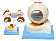 XM-425眼球构造放大模型在上颌骨上方将眼球水平切,由眼球壁巩膜、脉络膜上、下半侧、角膜、晶状体和玻璃体等8个部件组成,并显示眼球壁巩膜、角膜、虹膜、睫状体、脉络膜和视网膜的构造以及眼球内容物、眼球外肌、血管和神经等结构。
