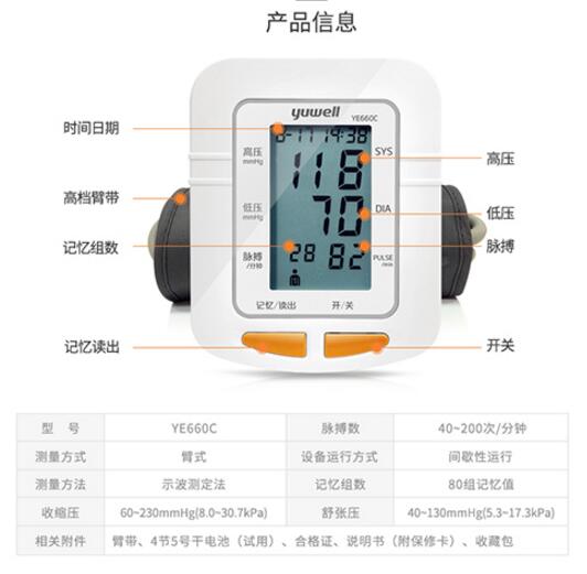 -----------以下"电子血压计 YE660C型"相关信息来自网络,仅供参考不作购买下单依据------------