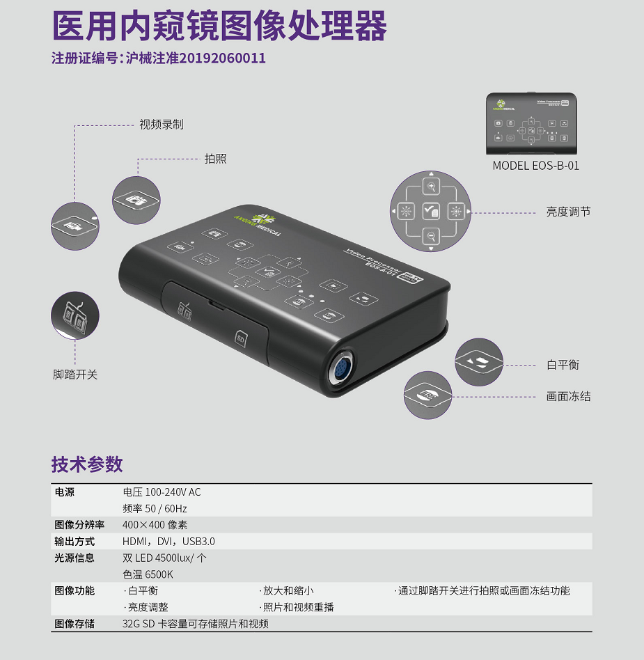 1 | 医用内窥镜图像处理器 | EOS-B-01 | 1 | 台 |