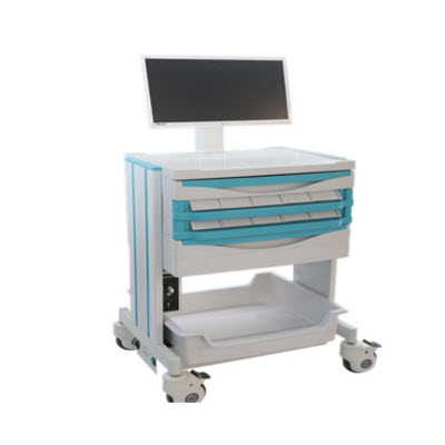 移动护士工作车 YJK-M02 主体ABS材质、铝合金支座、mini电脑主机、显示屏、键盘、鼠标、双天线、抽拉键盘托 一中抽、一小抽、2*5单面托盘 660*470*1000