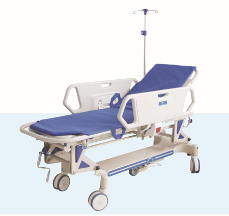 4、抢救车手摇柄(螺杆配有离合装置)可调整车面高度,